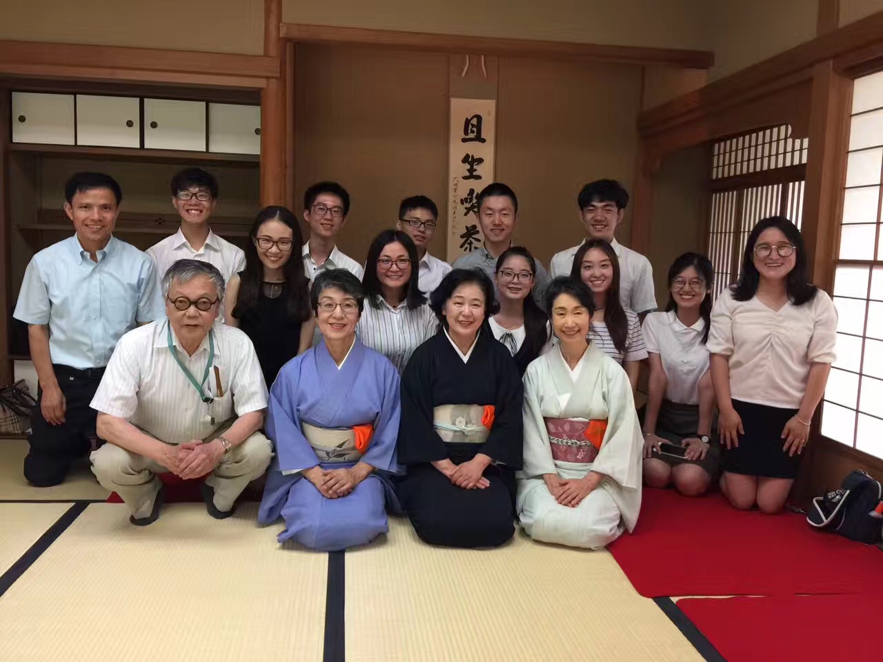 函徳亭での茶道体験記念撮影。この建物は東京ドームの近くにある小石川後楽園の敷地内にあります。