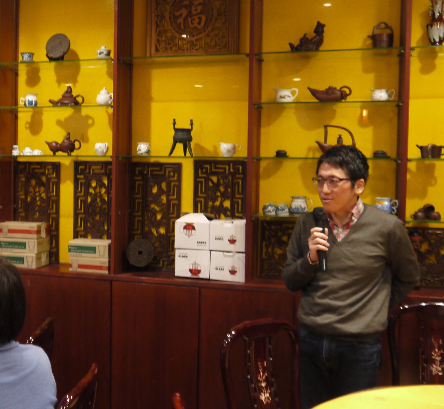 日本茶道と中国の淵源を聞きながら、作法に従い、お菓子を食べてお茶を飲用することの楽しさを味わいました。日本人が忙しいモダン生活を送る一方、茶道の芸術的で煩瑣な手順を守っているようなところから、伝統文化に対する尊崇を伺えます。