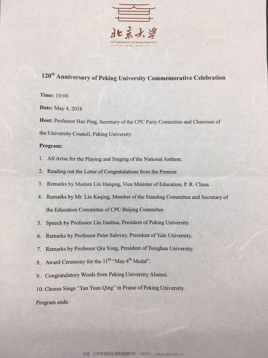 北京大学創立120周年参加活動報告