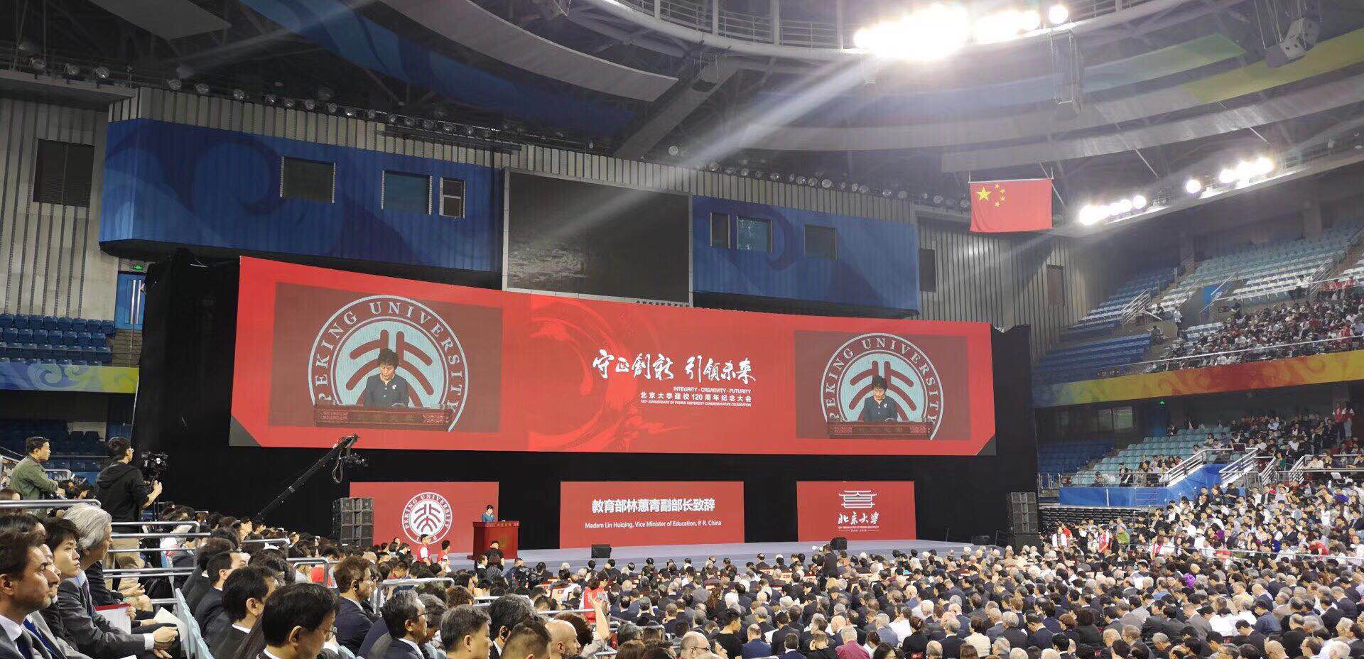 ・4日には今回のメインイベントである「120周年記念大会」に各国の来賓の参加のもと日本国際校友会の代表として堀江会長、西山事務局長が参加を行い、1898年中国で初めて設立された大学であり、中国で最も歴史のある北京大学の創立120周年を参加者全員でお祝いしました。