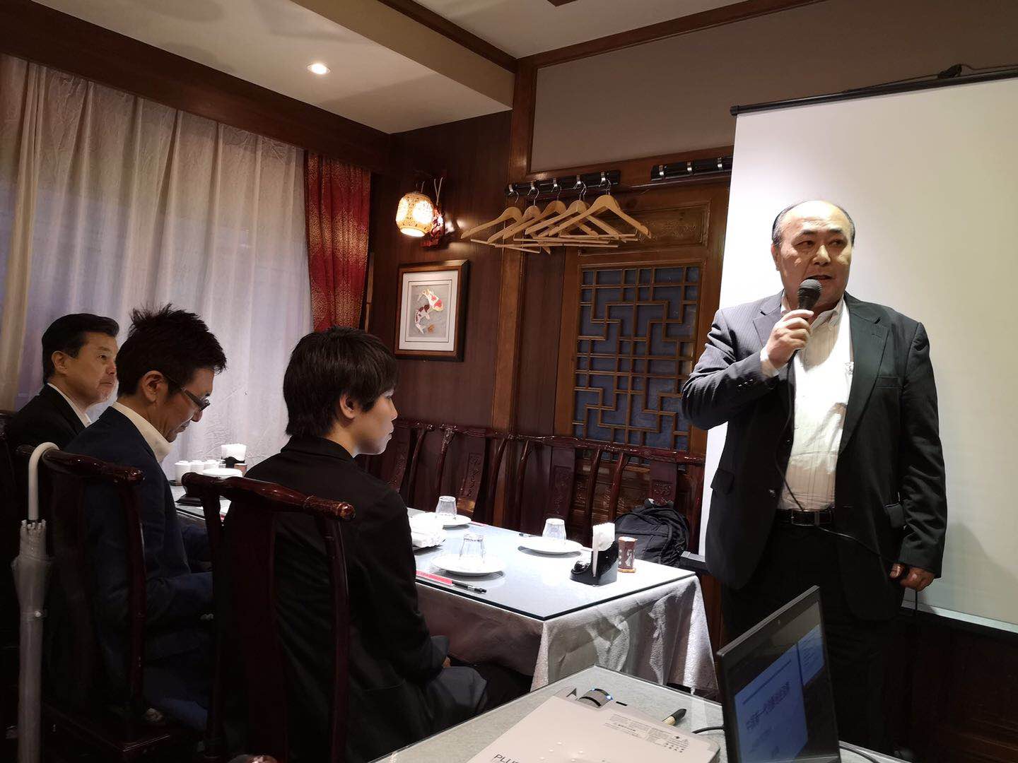 お魚料理、天ぷら、お寿司などおいしい日本料理をいただきながら中国と日本を行き来する校友同士、ビジネス話で大いに盛り上がりました。