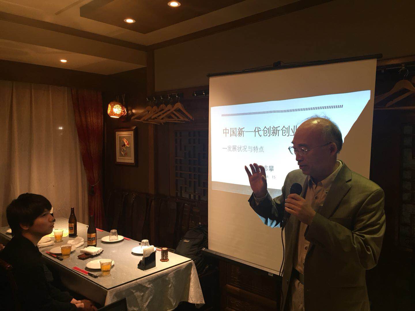 23日の夕べ、本校友会は李副学長と厳軍秘書長の訪問歓迎会を開催いたしました。日中の校友が集まり、大変に盛り上がりました。李副学長から最近の北京大学の様子をお話しいただき、「皆さん、いつでも大学へ遊びに来てください。」とお言葉を頂戴いたしました。
