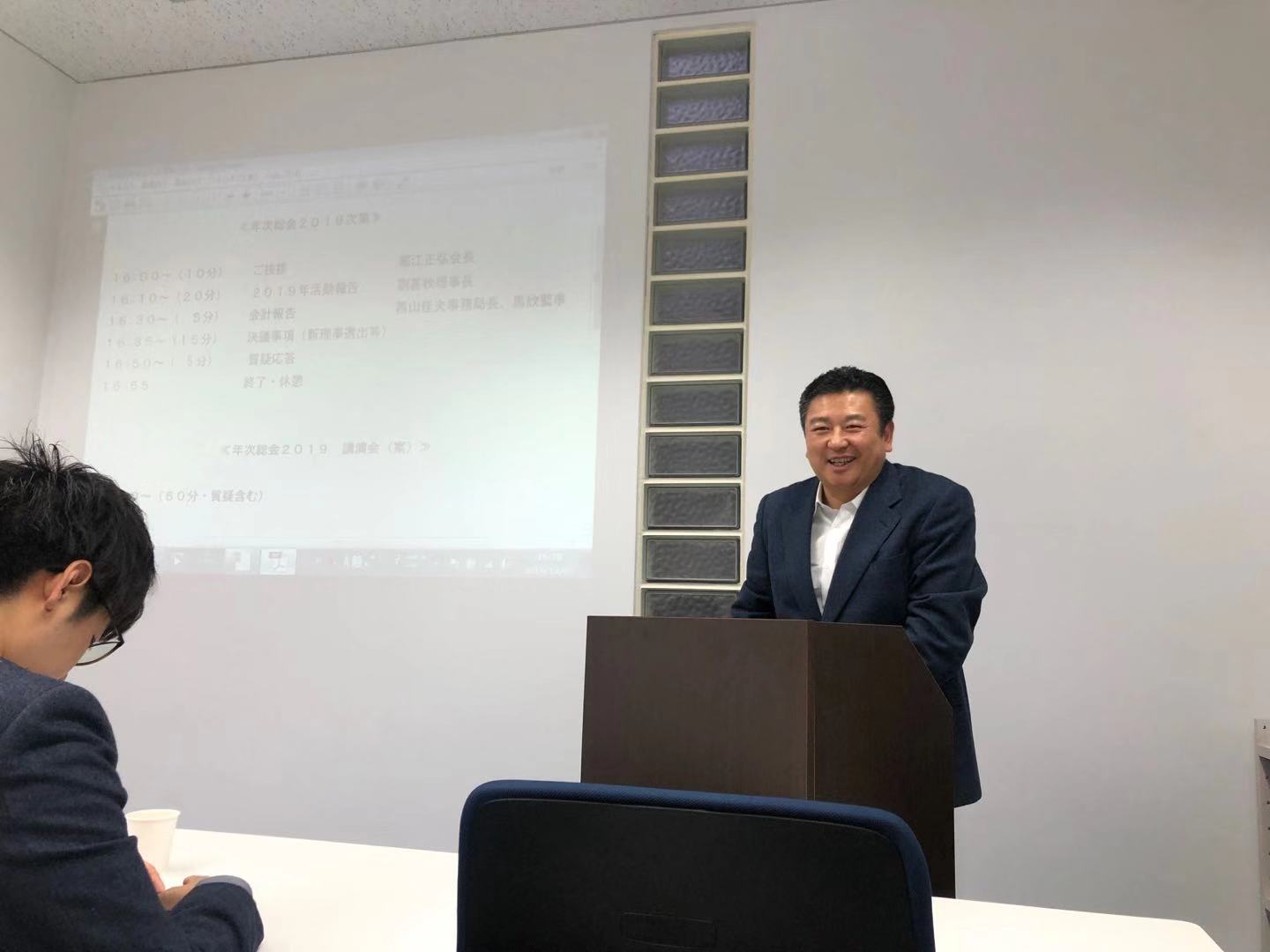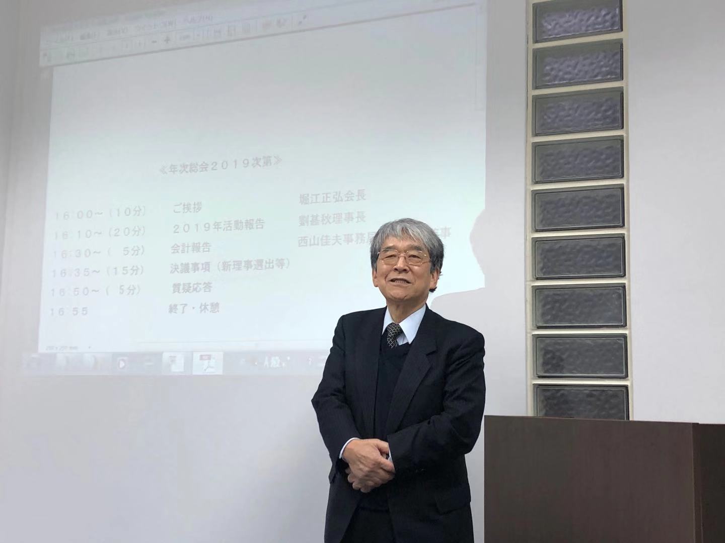次に劉理事長より設立からの今までの振り返りや2019年度の活動報告を行いました。続いて西山事務局長より収支報告等について報告があり、寄付者に対するお礼が述べられました。その後任期満了に伴う理事及び監事の改選選挙があり、満場一致の賛成で新理事・監事が選ばれました。新たに新任理事として3名が選ばれました。