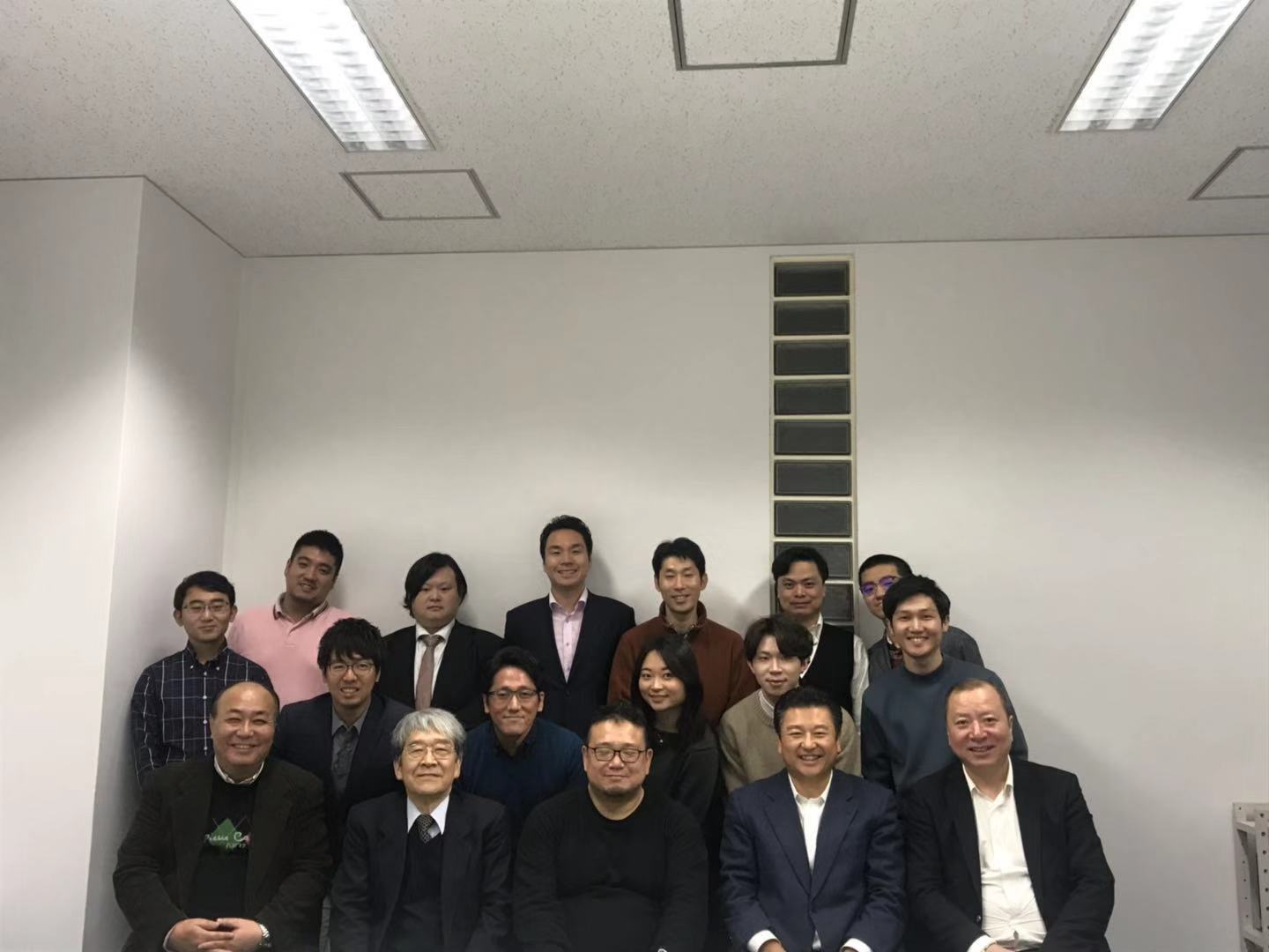 三菱総合研究所での記念撮影。(北京大学の学生と先生、と三菱総合研究所社員一同。前列真ん中に大森京太社長)
