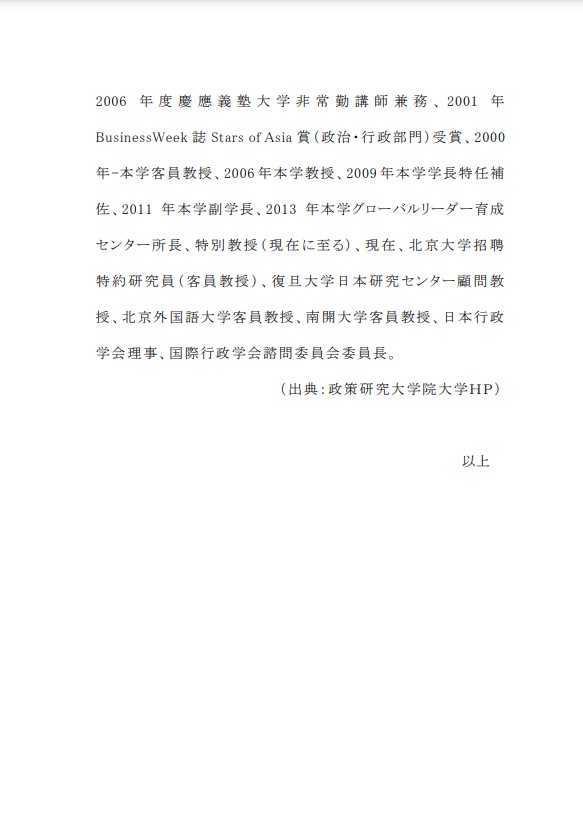 ・北京大学で学んで帰国した日本人と中国からの留学生や日本に滞在する同窓生との交流を主体に活動するという貴校友会の趣旨は、大変意義のあることであり強く支持する。
