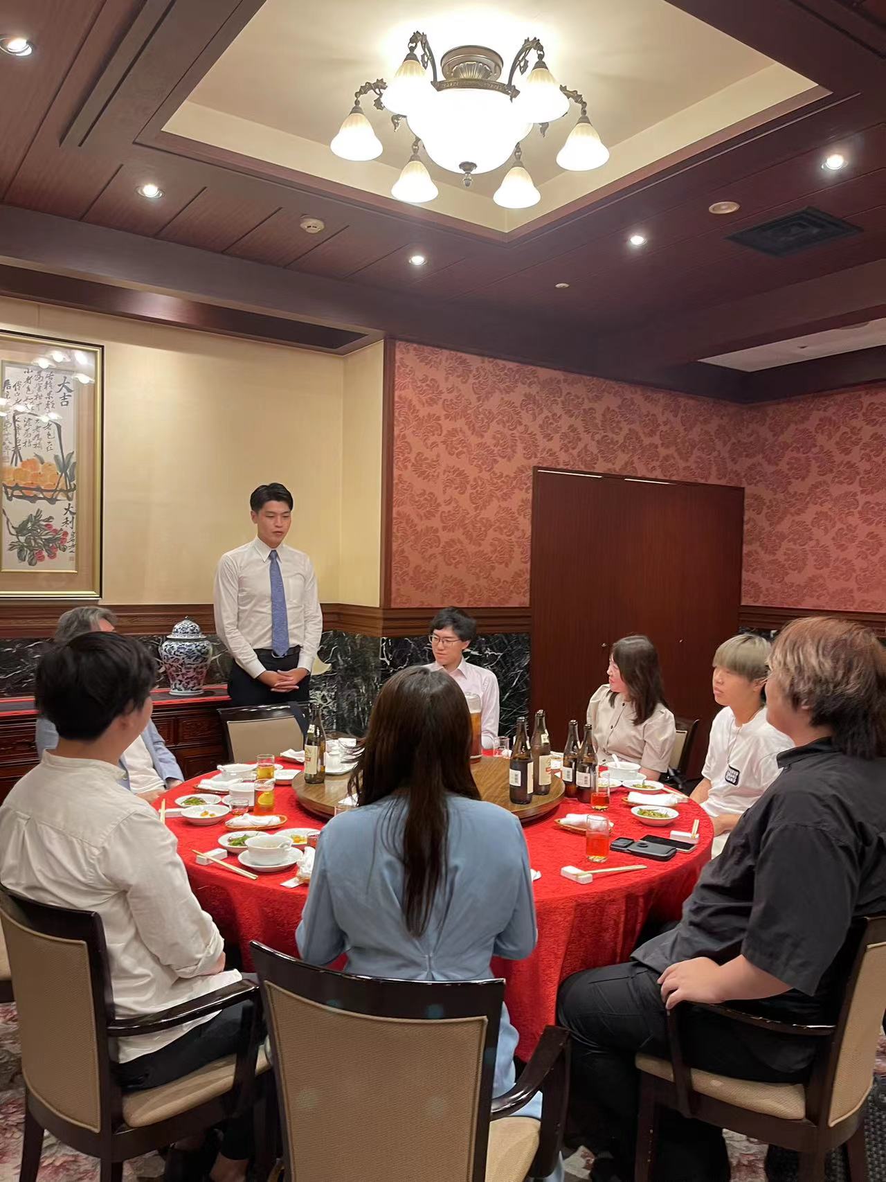 日本視察を終えて、東京グランドホテル蘭の間で訪問団一同のための歓送会を開催しました。訪問先の企業の方と、日本の北京大学校友たちも出席して頂きました。今回の交流活動は訪問先企業と大使館をはじめとする皆様に大変お世話になりました。本覧を借りて厚く御礼申し上げます。