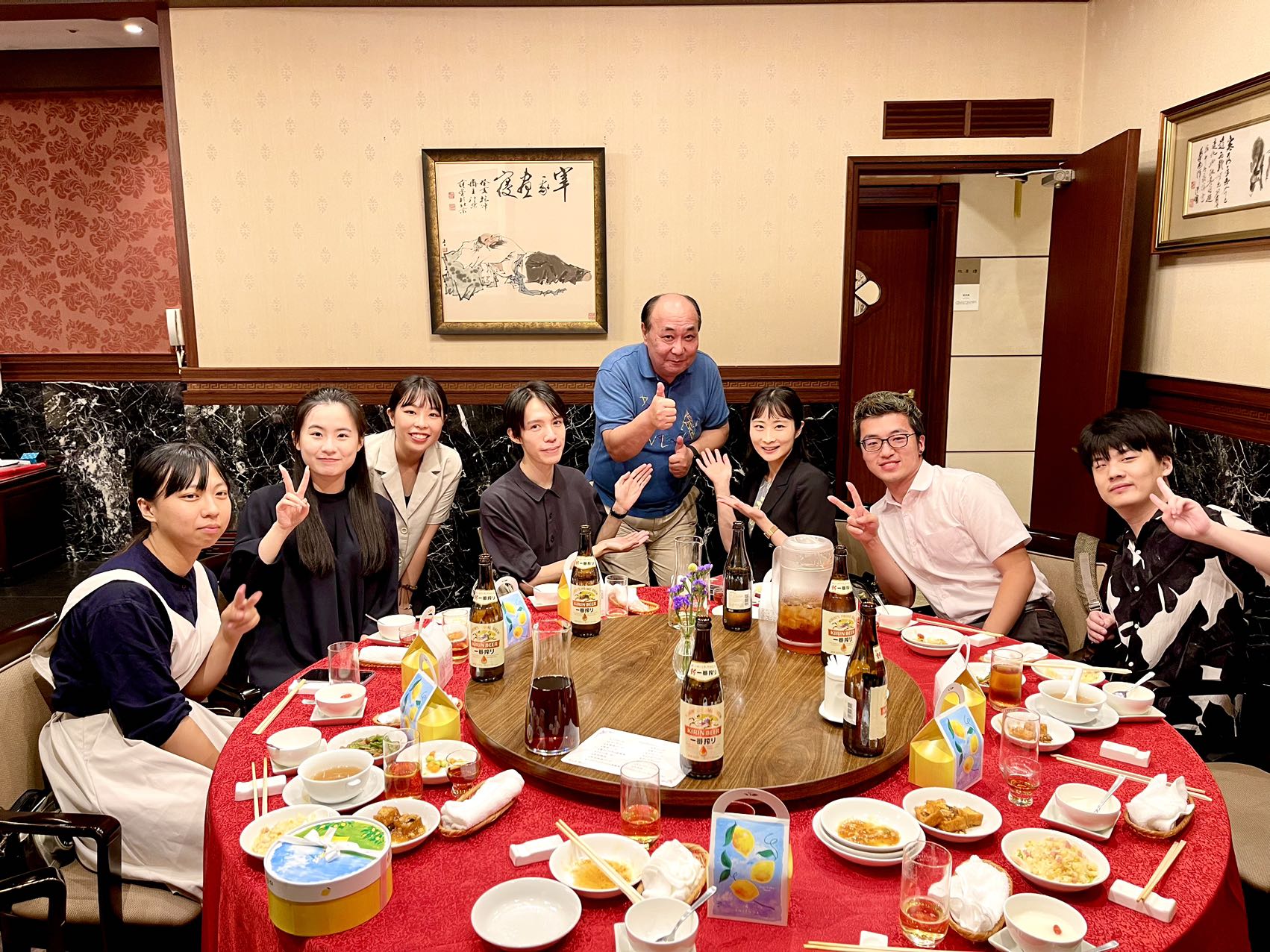 劉理事長、西山副会長を含め、社会人と学生も参加し、美味しい四川料理を囲みながら